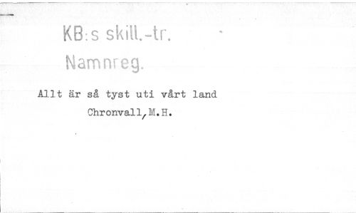 //// KB:s //// Namnreg. //// Allt är så tyst uti vårt land Chronvall,M.H. ////