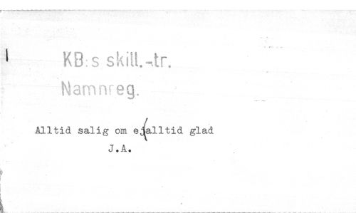 //// KB:s skilt.-tr. //// Nar-)tv-eg, //// Alltid salig om ealltid glad //// J.A. ////