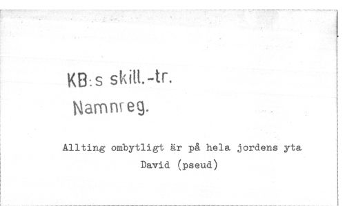 //// KB:s skilt.-tr. //// Namnreg. //// Allting ombytligt är på hela jordens yta David (pseud) ////