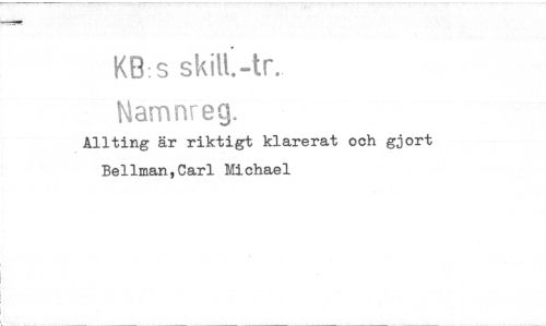 //// KB:s tr.. //// amnFecj. //// Allting är riktigt klarerat och gjort Bellman, Carl Michael ////