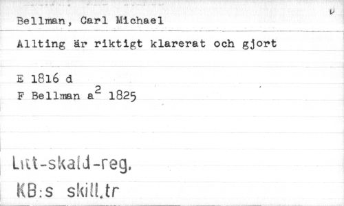 //// Bellman, Carl Michael //// Allting är riktigt klarerat och gjort //// E 1816 d //// F Bellman a2 1825 //// Isd-s //// K,13:s s!uU.tr ////