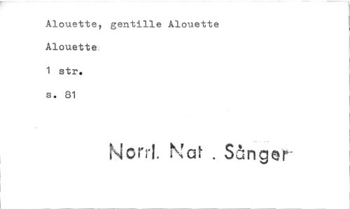 //// Alouette, gentille Alouette Alouette //// 1 str. s. 81 //// Nord. Na! . Sånger ////