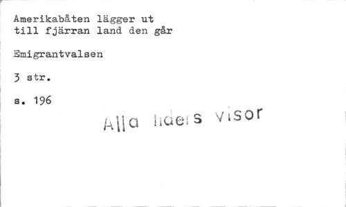 //// Amerikabåten lägger ut till fjärran land den går //// Emigrantvalsen 3 str. //// s. 196 //// I sor ////