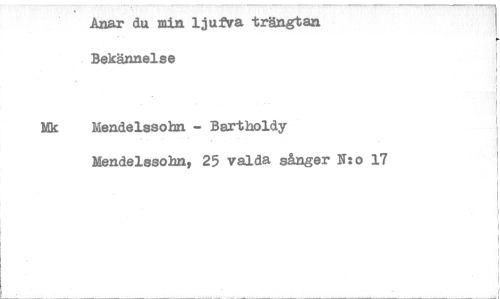 //// Anar du min ljutna trängtan Bekännelse //// Mk Mendelssohn - Bartholdy //// Mendelssohn, 25 valda sånger N:o 17 ////