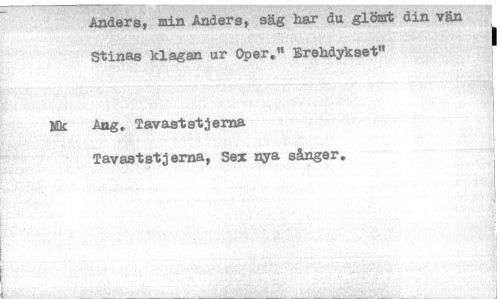 //// Anders, min Anders, säg har du glömt din vän Stinas klagan ur Oper." Erehdykset" //// Mk Ang. Tavaststjerna //// Tavaststjerna, Sex nya sånger. ////