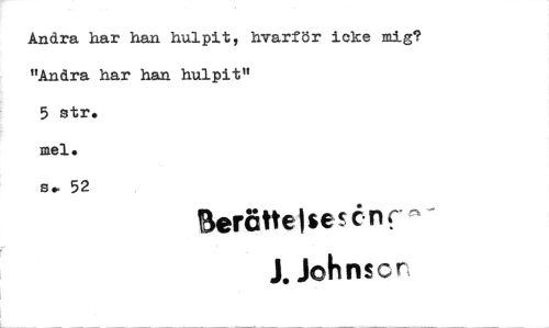//// Andra har han hulpit, hvarför icke mig? //// "Andra har han hulpit" //// 5 str. //// mel. //// s. 52 //// Berättelses 8n r //// i.Johnscr ////