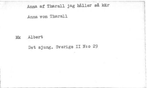 //// Anna af Tharall jag håller så kär Anna von Tharall //// Nk Albert //// Det sjung. Sverige II N:o 29 ////
