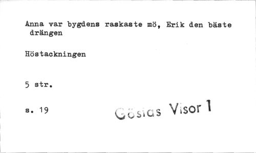 //// Anna var bygdens raskaste mö, Erik den bäste drängen //// Höstackningen //// 5 str, //// 13„ 19 Y 4)01 ////
