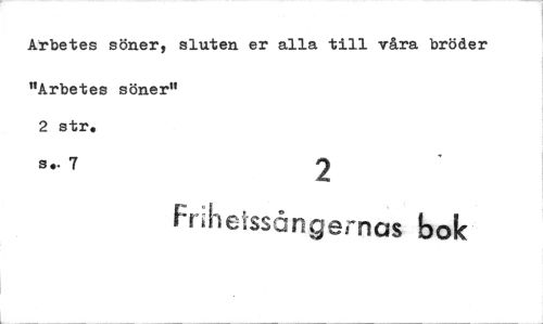 //// Arbetes söner, sluten er alla till våra bröder //// "Arbetes söner" 2 str. //// se. 7 2 //// s..(5ngernas bok ////