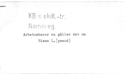 //// 1(13: s skilt.-tr. //// Namnreg. //// Arbetsskaror nu gäller det om Nisse L.(pseud) ////