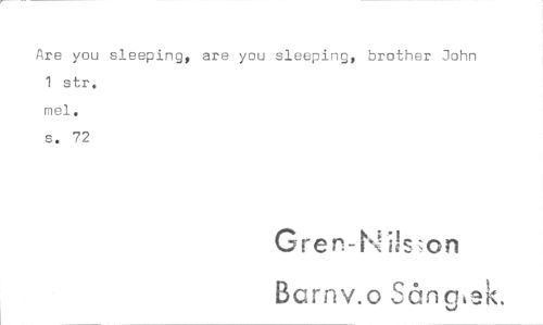 //// Are you sleeping, are 1 str. mel, s. 72 you sleeping, brother John //// Grer-ffi:Uszon //// Barriv.o Sånglek, ////