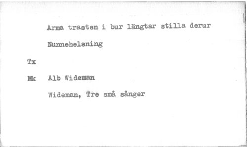 //// Arma trasten i bur längtar stilla derur //// Nunnehelsning //// Tx //// Mk Alb Wideman //// Wideman, Tre små sånger ////