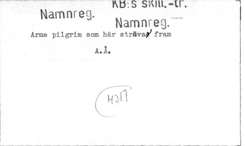 //// Kt5: S SeSJU. —IF. //// Namnreg. //// Arme pilgrim som här sträva,' fram //// A.I. //// Namnreg. //// Kali ////