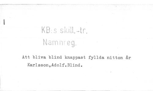 //// KB: s //// Namne eg. //// Att bliva blind knappast fyllda nitton år Karlsson,Adolf.Blind. ////
