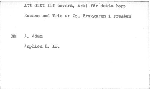 //// Att ditt lit bevara, kök: för detta hopp Romans med Trio ur Op. Bryggaren i Preston //// Mk A, Adam //// Amphion H. 18. ////
