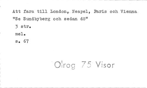 //// Att fara till London, Neapel, Paris och Vienna //// "Se Sundbyberg och sedan dö" //// 3 str. //// mel. //// s. 67 //// O ro': Visor ////
