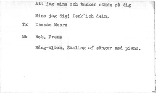 //// Att jag mine och tänker städs på dig //// Mine jag dig: Denk'ich dein. Ta Thomas Moore //// Mk Rob. Franz //// Sång-album. Samling af sånger med piano. ////
