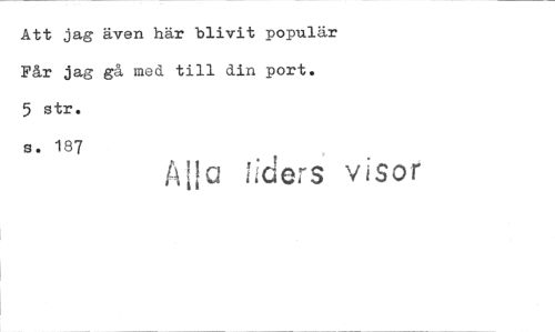 //// Att jag även här blivit populär //// Får jag gå med till din port. //// 5 str. s. 187 //// A! a tiders visor ////