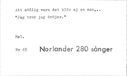//// Att otålig vara det klär ej en man,.. "Jag tror jag dröjer." //// Mel. //// Nr 65 Norlander 280 sånger ////