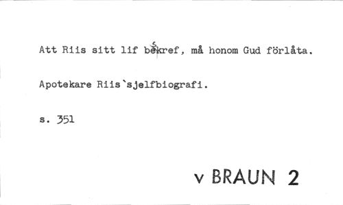 //// Att Riis sitt lif båkref, må honom Gud förlåta. Apotekare Riis'sjelfbiografi. s. 351 //// v BRAUN 2 ////