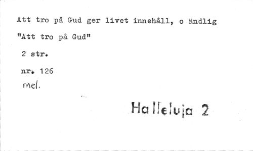 //// Att tro på Gud ger livet innehåll, o ändlig "Att tro på Gud" //// 2 str. nr, 126 //// Ha I e!uia ////