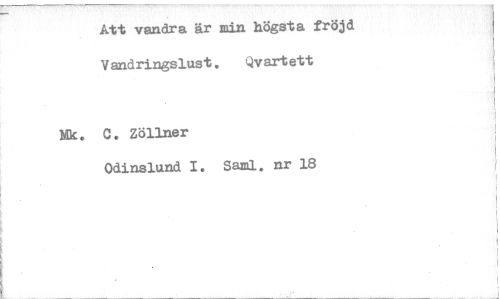 //// Att vandra är min högsta fröjd //// Vandringslust. Qvartett //// Mk. C. Zöllner //// Odinslund I. Saml. nr 18 ////