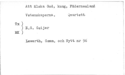 //// Att älska Gud, kung, Fädernesland //// Vetenskaperna. Qvartett, //// Tx //// B.G. Geijer //// MK ) //// Lewerth, Gamm. och Nytt, nr 96 ////
