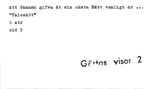 //// Att öknamn gifva åt sin nästa Rätt vanligt är "Talesätt" ö str sid 5 //// • • • //// Gi..c els visor 2 ////