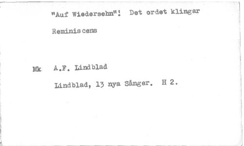 //// "Auf Wiedereehn!t! Det ordet klingar Reminiscens //// Mk A.F. Lindblad //// Lindblad, 13 nya Sånger. H 2. ////