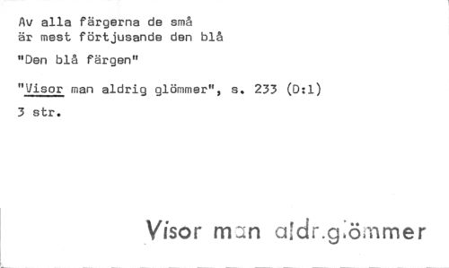 //// Av alla färgerna deP //// SMd //// är mest förtjusande den blå "Den blå färgen" //// "Visor man aldrig glömmer", s. 233 (D:1) 3 str. //// Visor m:en a r.g:ö.rimer ////