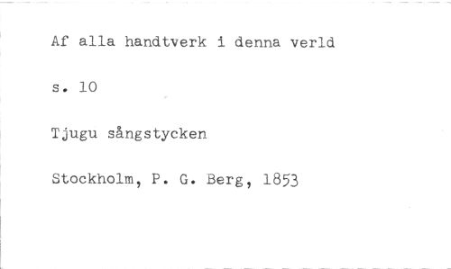 //// Af alla handtverk i denna verld s. 10 //// Tjugu sångstycken //// Stockholm, P. G. Berg, 1853 ////