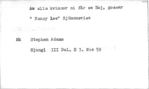 //// A4 alla kvinmr ni får ss Hoj, gossar " Nancy Lee" Sjömansvisa //// Y& Stephen Adams //// Sjung; III Del. H 3. N:o 59 ////