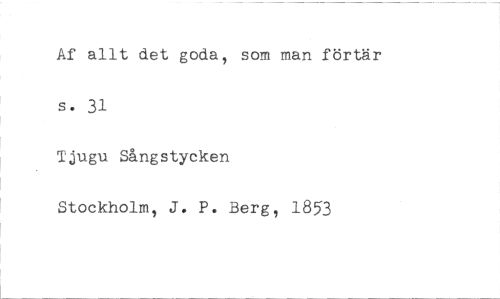 //// Af allt det goda, som man förtär s. 31 //// Tjugu Sångstycken //// Stockholm, J. P. Berg, 1853 ////