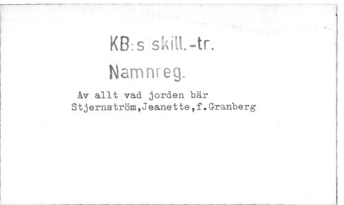 //// KB:s //// Namnreg. //// Av allt vad jorden bär //// Stjernström,Jeanette,f.Granberg ////