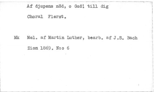 //// Af djupens nöd, o Gud: till dig nara' Fierst, //// Mk Mel. af Martin Luther, bearb. af 3.8. Bach Zion 1869. N:o 6 ////