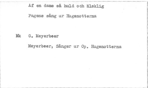 //// Af en dame så huld och älsklig Pagens sång ur BUgenotterna //// Mk G. Meyerbeer //// Meyerbeer, Sånger ur Op. Hugenotterna ////