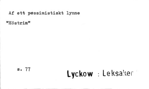 //// Af ett pessimistiskt lynne "Höstrim" //// s. 77 Lyckow : Leksaker ////