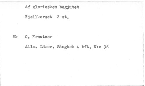 //// Af gloriesken begjutet Fjellkorset 2 st. //// Dyk C. Kreutzer //// Allm. Lärov. Sångbok 4 lift. N: o 96 ////