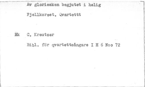 //// AV gloriesken begjutet i helig Fjelikorset, Qvartettt //// Nk 0, Kreutzer //// Bibi. för qvartettsångare I H 6 N:o 72 ////