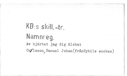 //// KB:s skilt.-tr. //// Namnreg. //// Av hjärtat jag dig älskat //// Callsson/Samuel Johan(frånNykils socken) ////