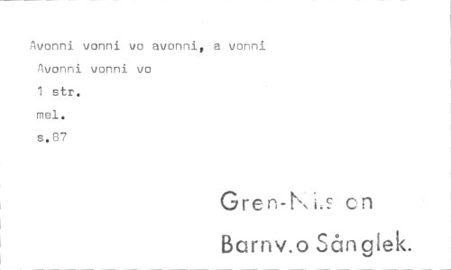 //// Avonni vonni vo avonni, a vonni //// Avonni vonni vo //// 1 str. //// mel. //// s.87 //// Gren-N c n //// Barnv.o Sån giek. ////
