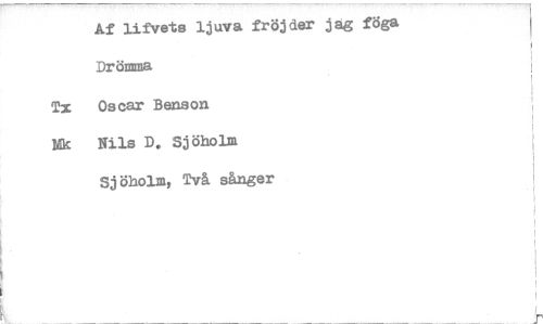 //// kf lifvets ljuva fröjder jag föga //// Drömma //// Tx Oscar Benson //// 1& Nils D. Sjöholm //// Sj öholm, Två sånger ////