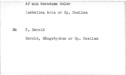 //// Af min barndoms dalar //// Isabellas Aria ur Op. Duellen //// F. Herold //// Herold, Sångstycken ur Op. Duellen ////
