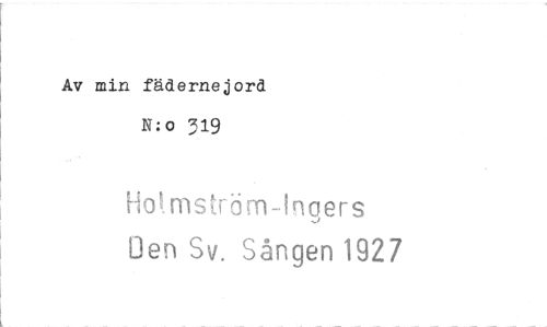 //// Av min fädernejord N: o 319 //// Hol,mström-Ingers //// Oen Sv. Sången 1927 ////