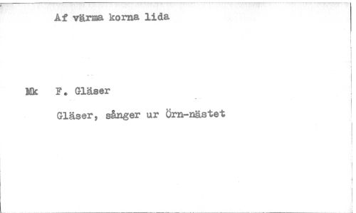 //// Af värna korna lida //// Mk F. Gläser //// Gläsery sånger ur Örn-nästet ////