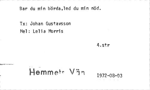 //// Bar du min börda,led du min nöd. //// Tx: Johan Gustavsson Mel: Lelia Morris //// 4.str //// Hemmete 1972-08-03 ////