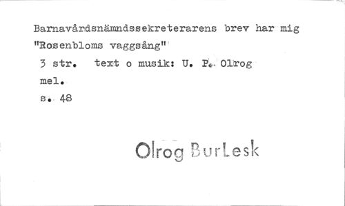 //// Barnavårdsnämndssekreterarens brev har mig //// "Rasenbloms vaggsång" //// 3 str. text o musik: U. P. Olrog //// mei. //// s. 48 ////