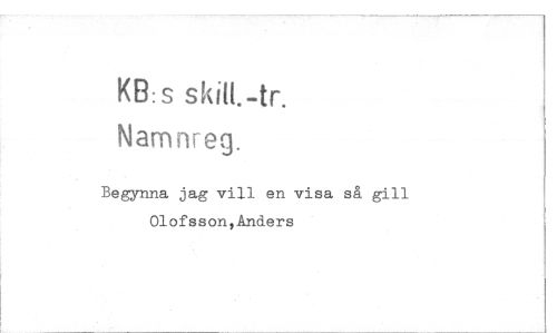 //// KB:s skilt. -tr. //// Namnreg. //// Begynna jag vill en visa så gill Olofsson,Anders ////