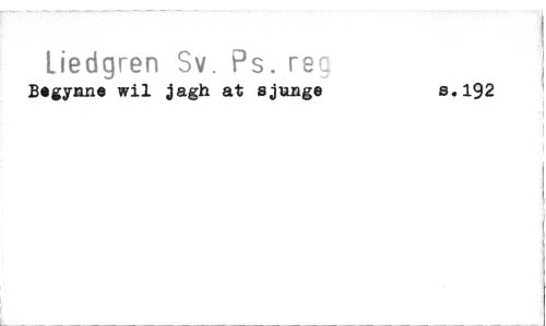 //// liedgren Sv. Ps. rec 5.192 //// Begynns wil jagh at sjungs' ////