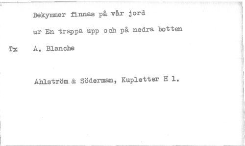 //// Bekymmer finnas på vår jord //// ur En trappa upp och på nedra botten //// Tx A. Blanche //// AhlströnLec Söderman, Kupletter H 1. ////